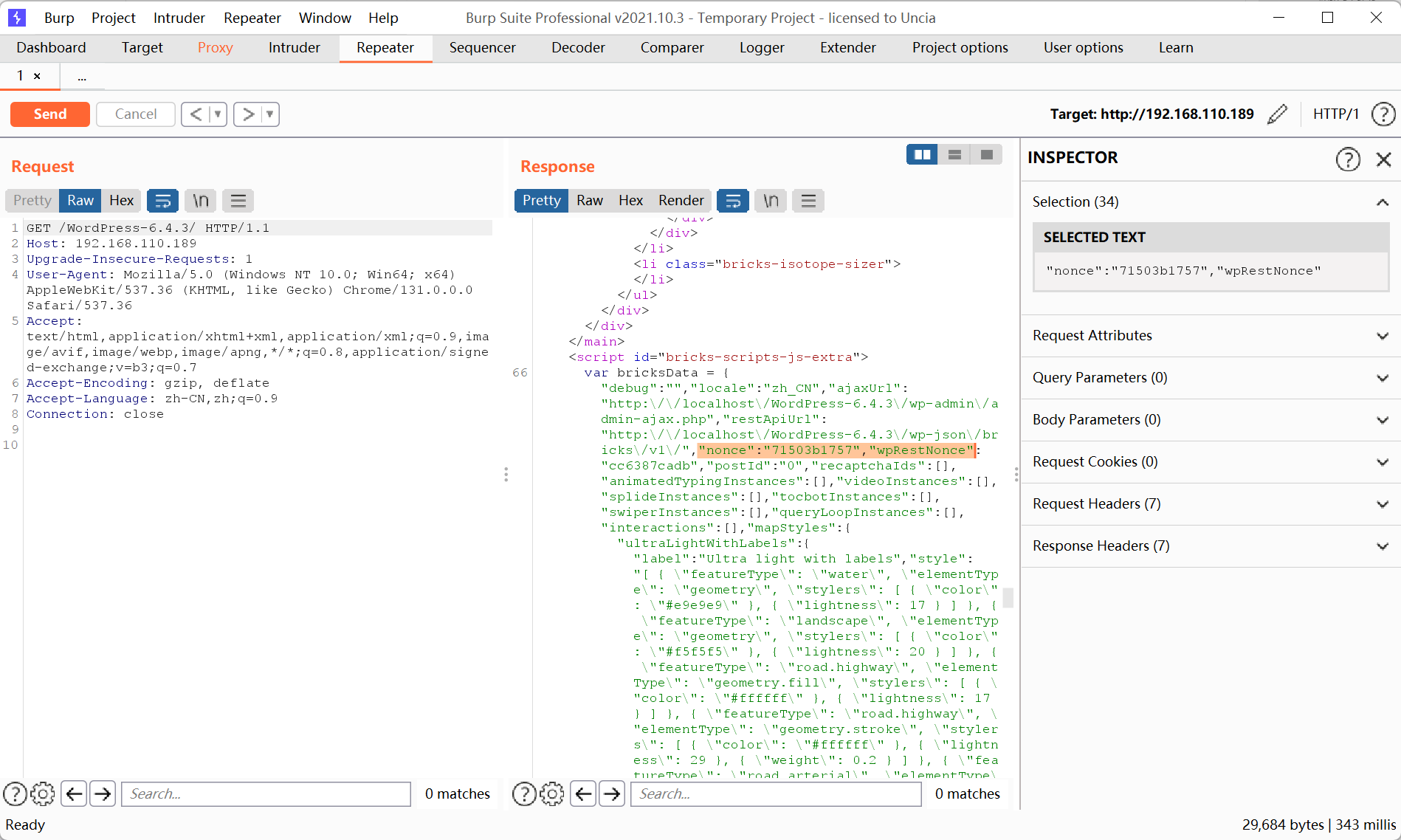 - 首先需要得到 nonce(==“只使用一次的数字”,它是一个在密码学和信息安全领域中广泛使用的概念,表示一个只能被使用一次的随机数或数值,主要用于确保数据传输的安全性和防止重放攻击==),直接访问网站即可(用Burpsuite抓包时代理使用如下配置,访问网站时使用WLAN的IPv4地址):