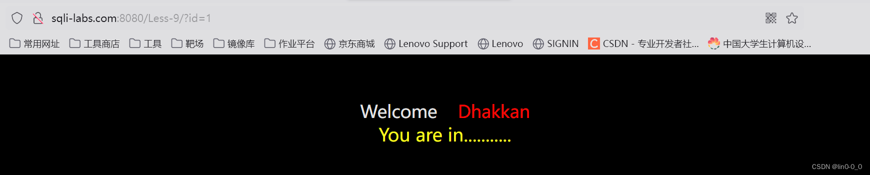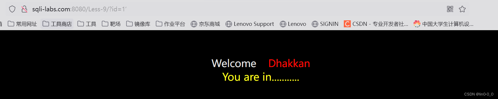 - 然后把 ') 的一部分去掉变成 ' ,此时显示you are in 说明猜中了,闭合符就是 '