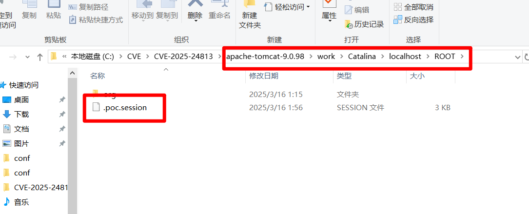 work/Catalina/localhost/ROOT目录下会生成一个.poc.session文件。