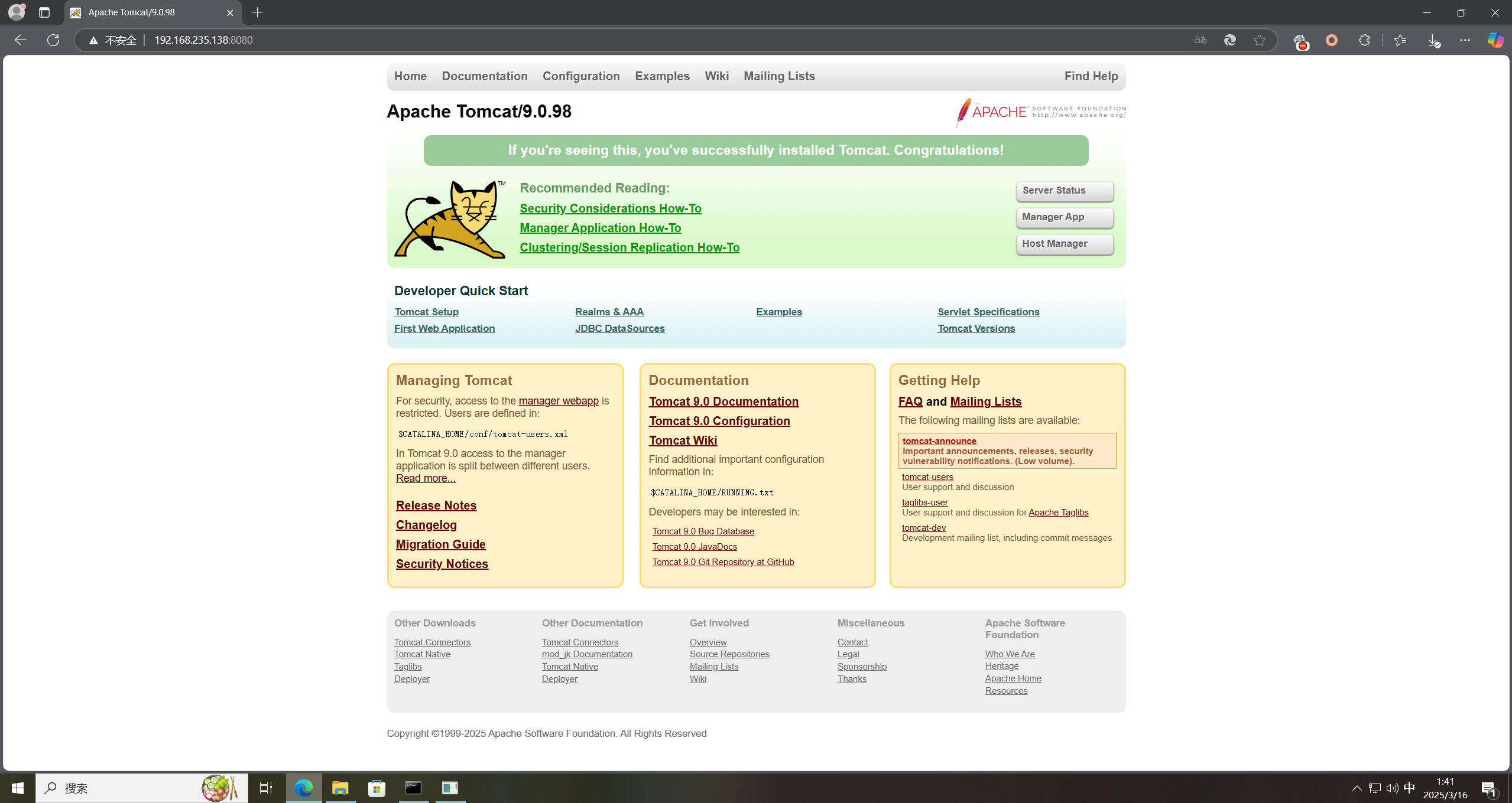 - 9.0.0.M1 <= Apache Tomcat <= 9.0.98