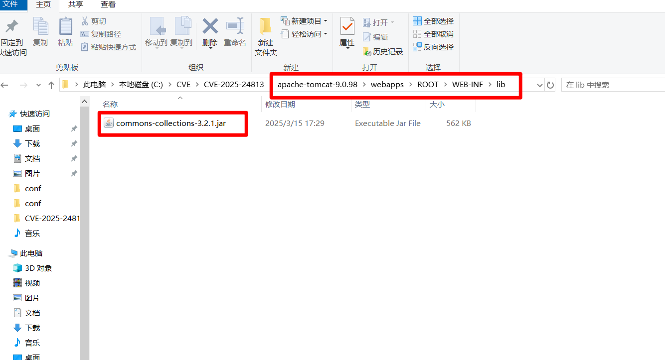 - 下载 Commons Collections 3.2.1.jar,然后进来到 Tomcat 根目录,进入