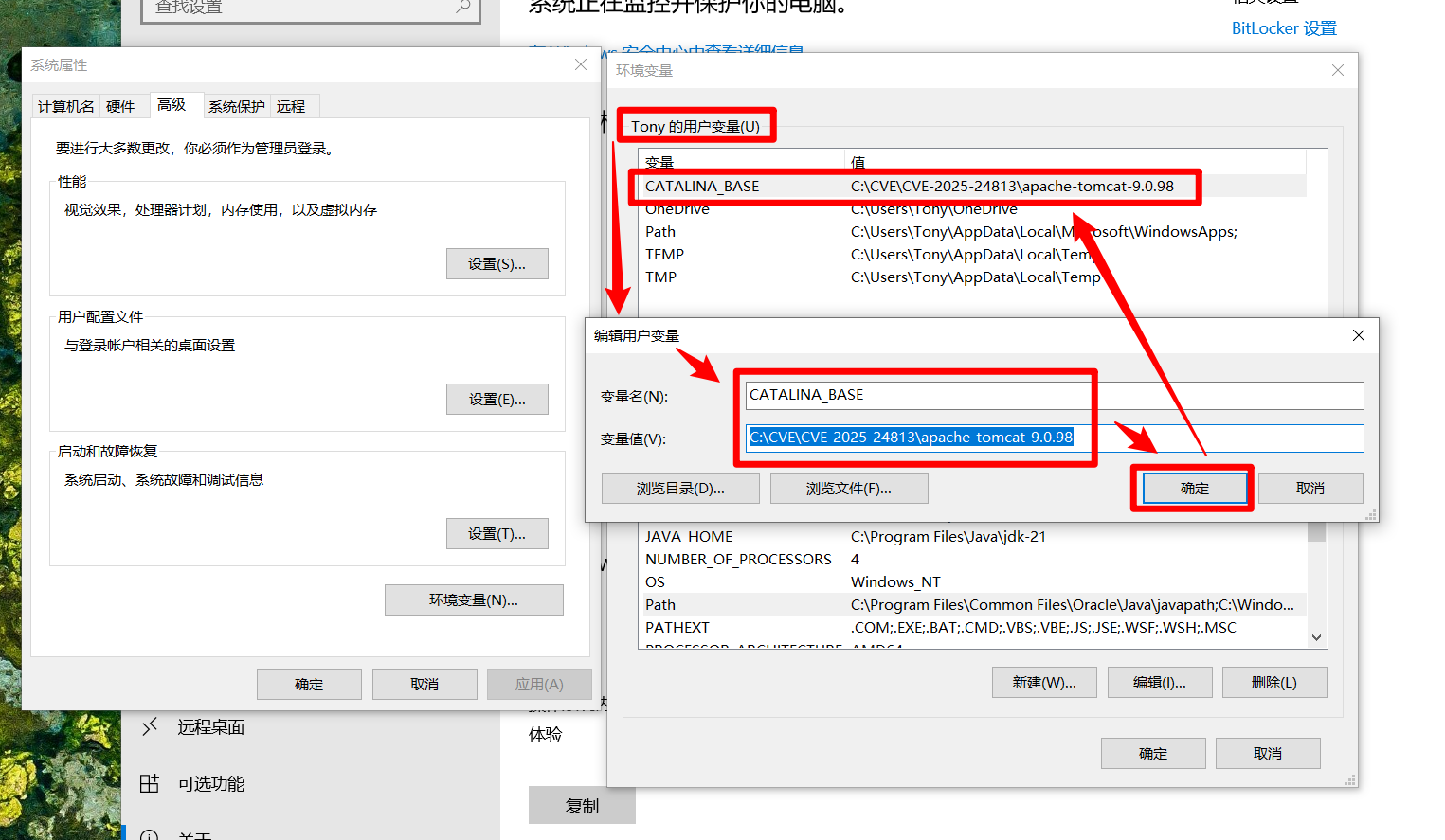 - 在 Apache Tomcat 下载对应漏洞版本的 Tomcat,并配置用户变量。