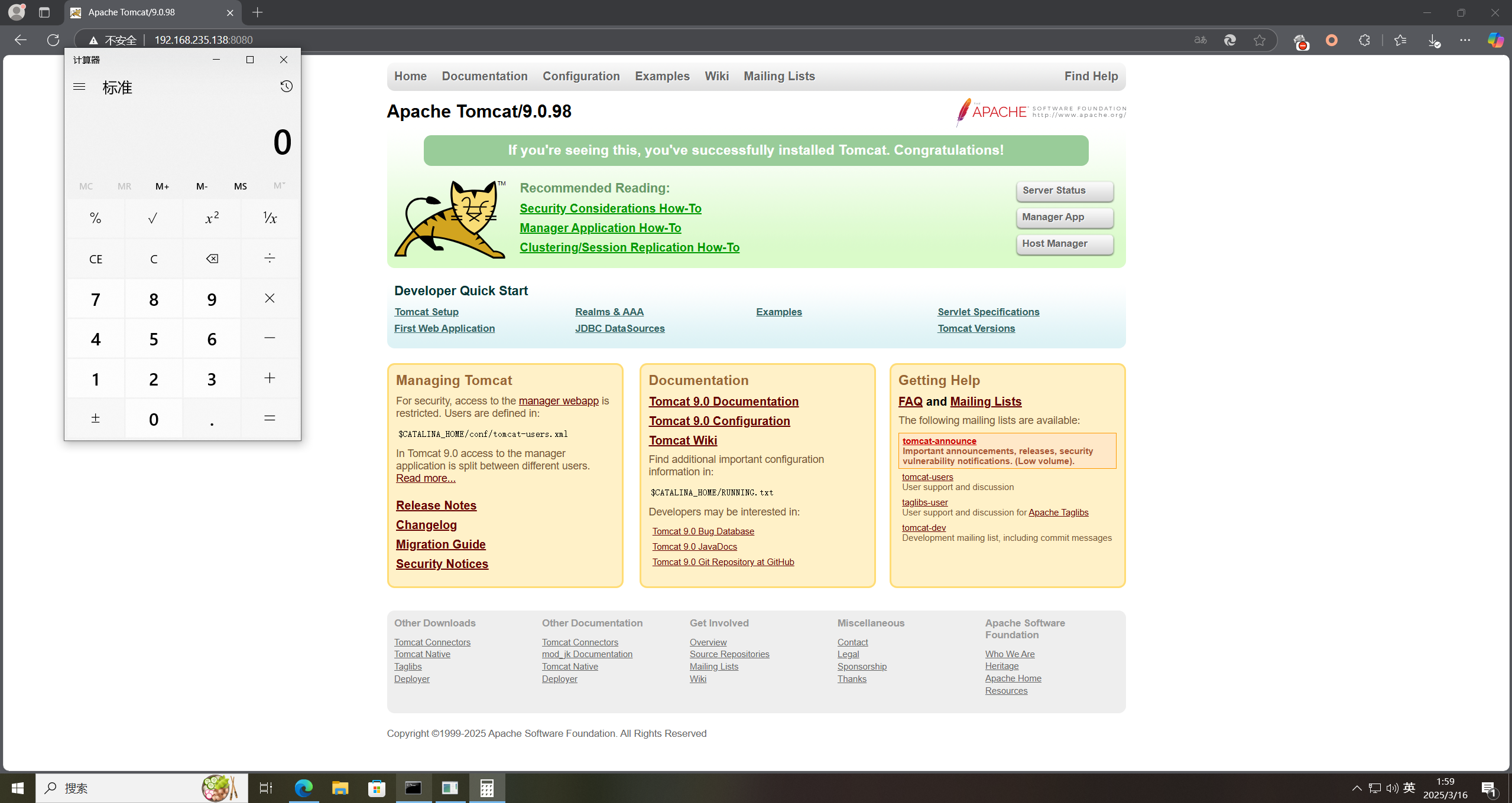 - 启动 Tomcat,并访问 8080 端口,查看是否启动成功。