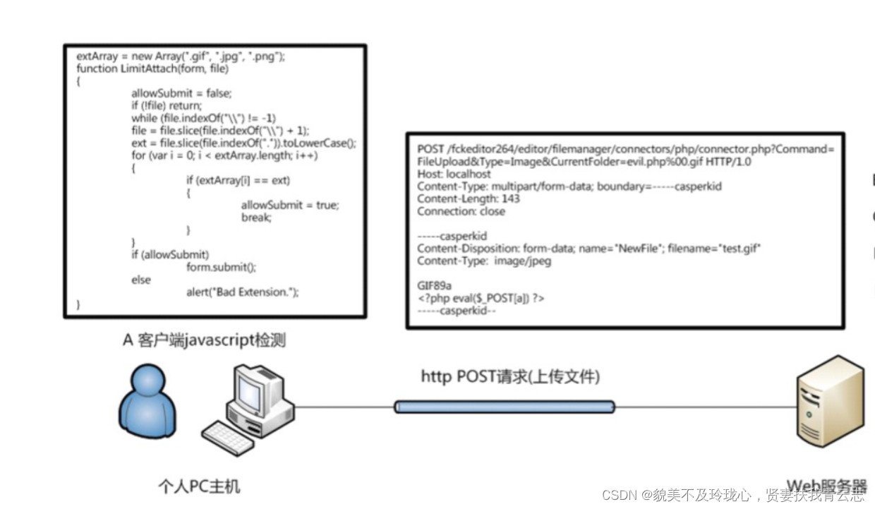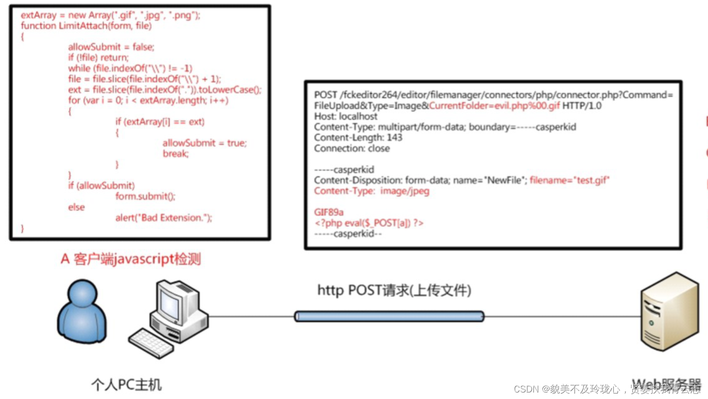 通常一个文件以HTTP协议进行上传时,将以POST请求发送至web服务器,web服务器接收到请求后并同意后,用户与web 服务器将建立连接,并传输data: