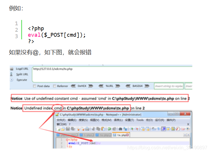 为什么呢?因为一个变量没有定义,就被拿去使用了,服务器就善意的提醒:Notice,你的xxx变量没有定义。这不就暴露了密码吗?所以我们加上@。