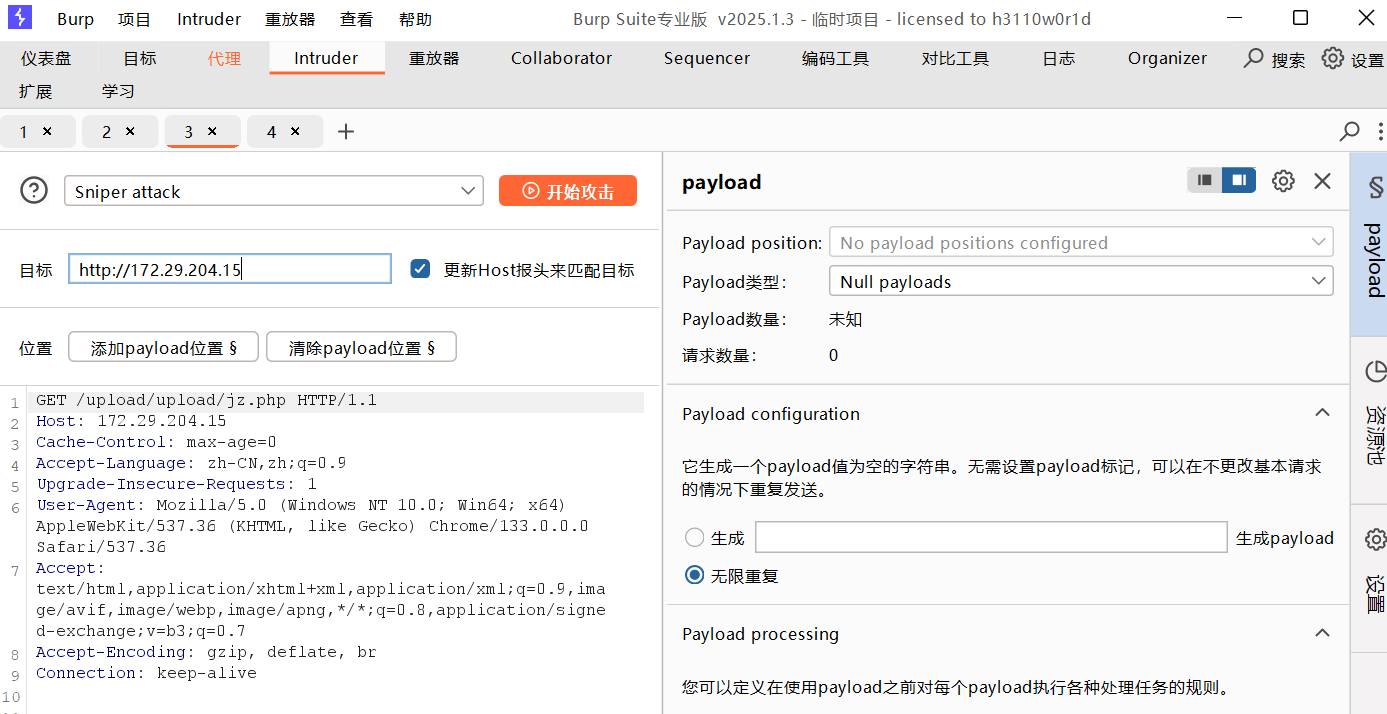 1.将带有恶意语句的1.php修改为1.jpg上传,抓包