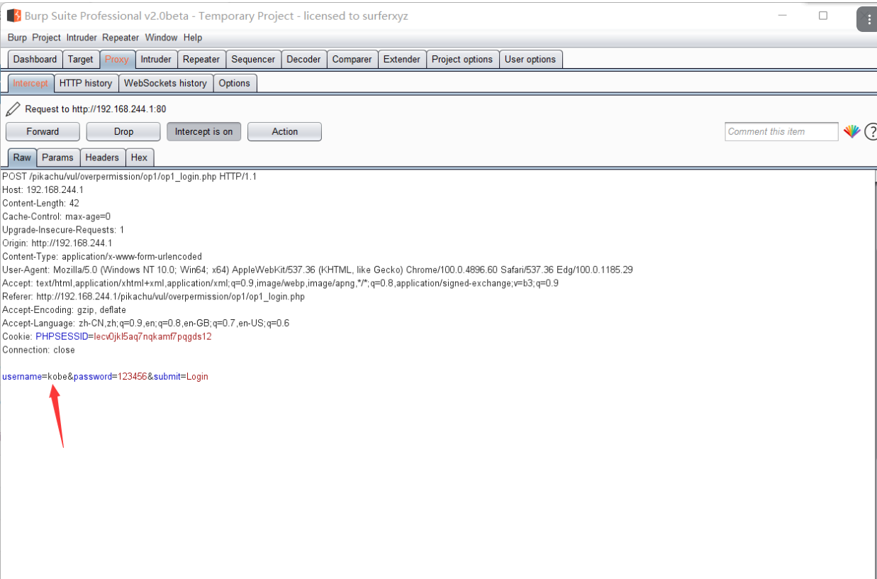 我们先在登录 pikachu 的时候抓个包看看能不能更改 admin 的密码