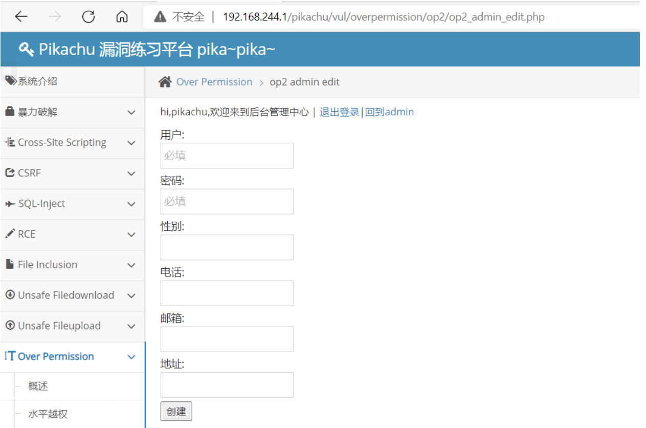 http://192.168.244.1/pikachu/vul/overpermission/op2/op2_admin_edit.php