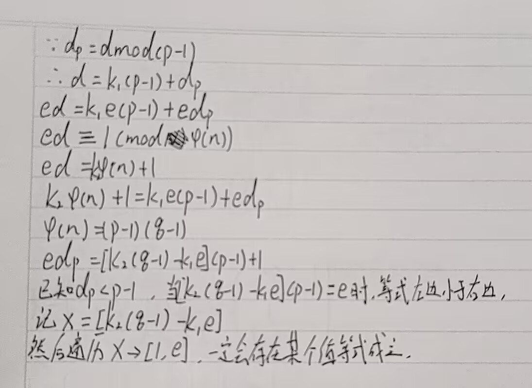 - 攻击原理:dp = d mod (p-1),则 dp * e ≡ 1 mod (p-1)