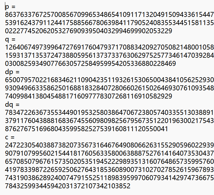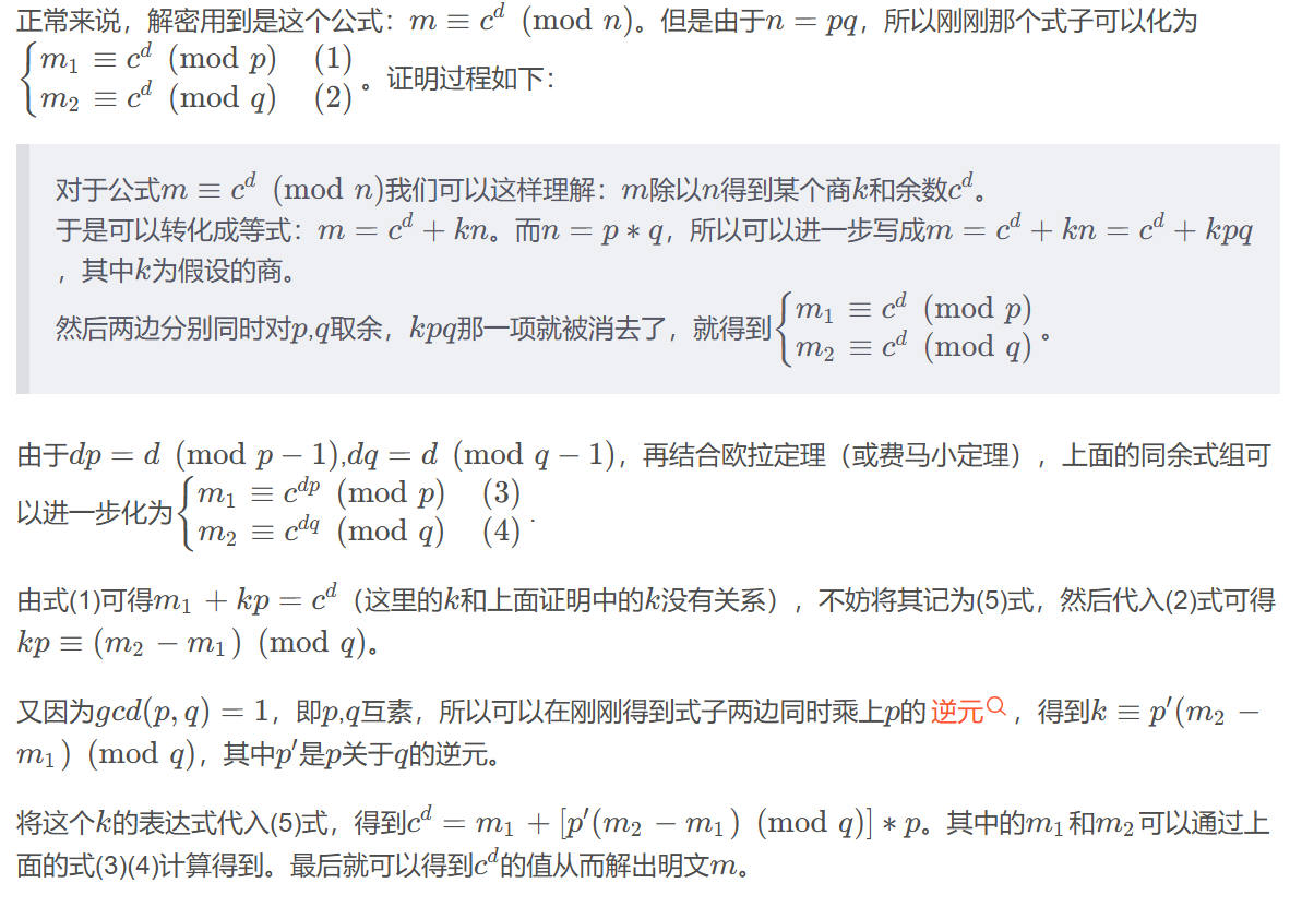其中:dp=d%(p-1), dq=d%(q-1) -