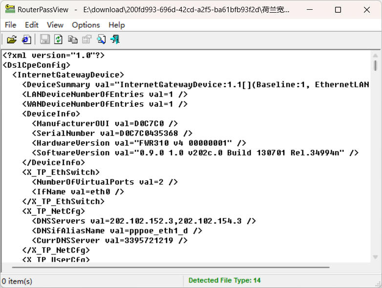文件是.bin文件,需要用RouterPassView打开