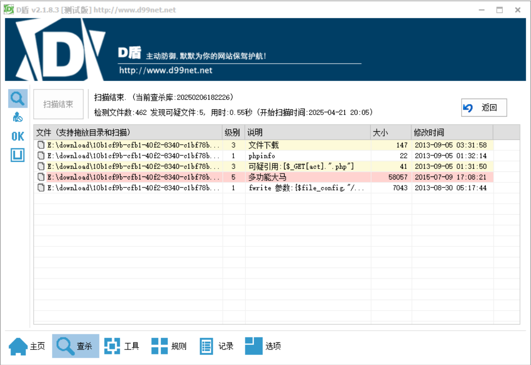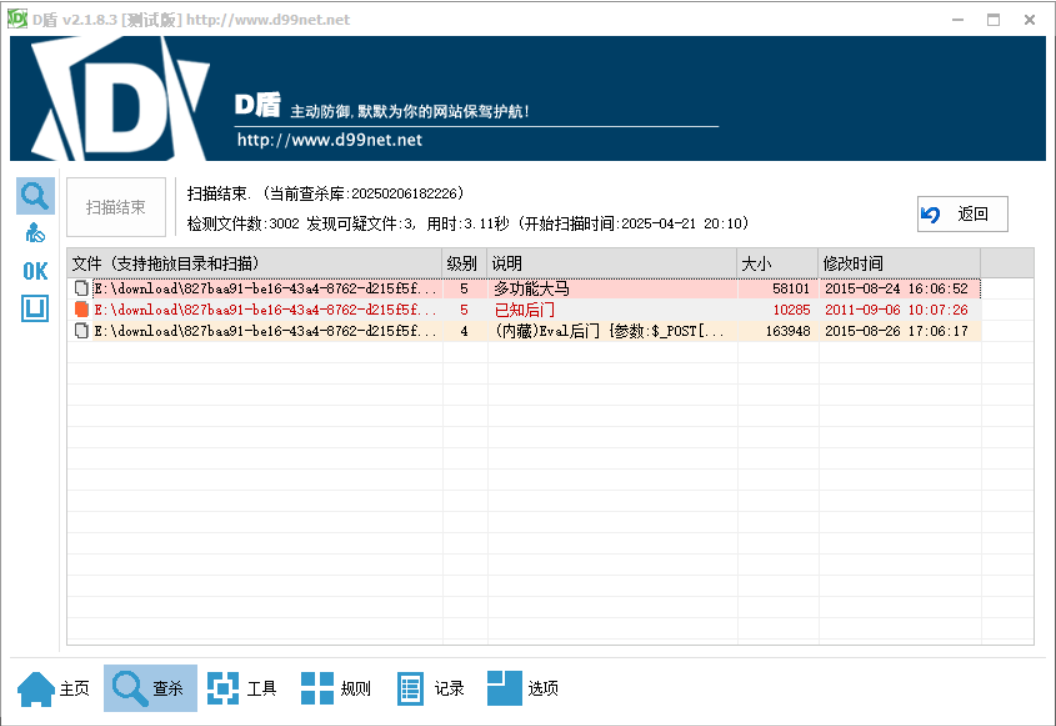 由题,顾名思义需要用到查杀工具,这里使用D盾