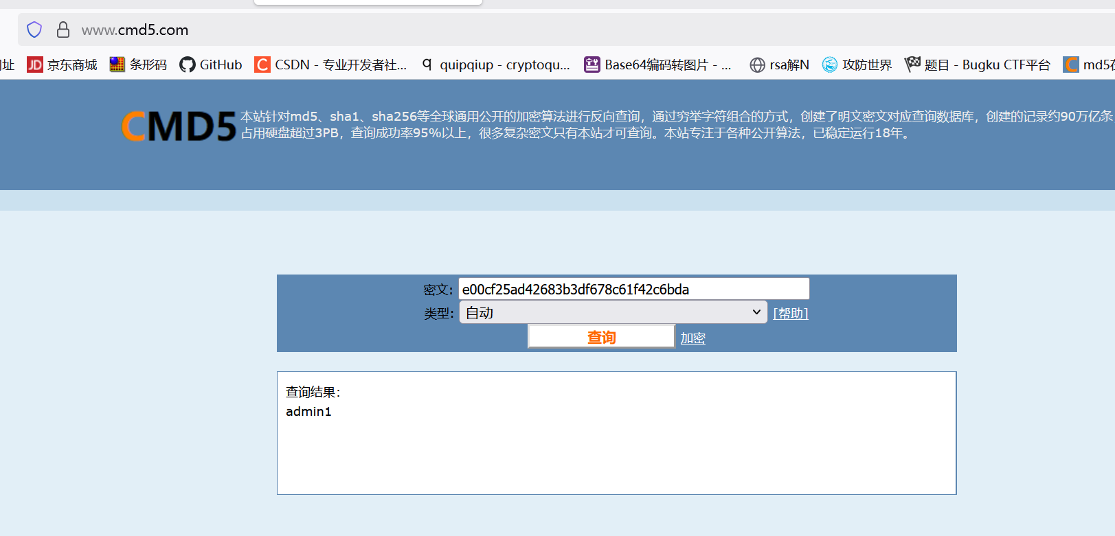 目前只找到在线工具来解密md5