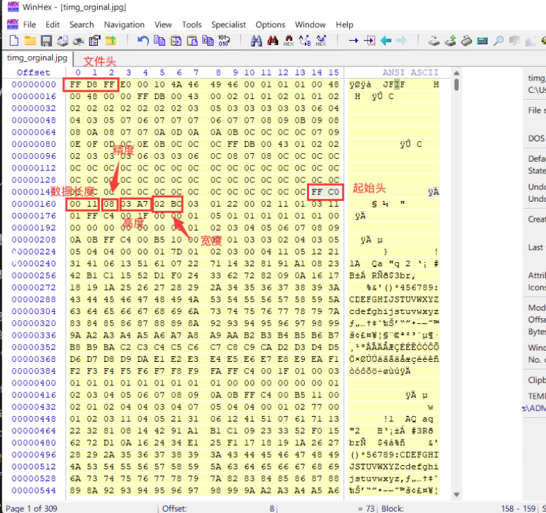 2.根据: 数据长度: 2字节,精度: 1字节,图像高度: 2字节 , 图像宽度: 2字节