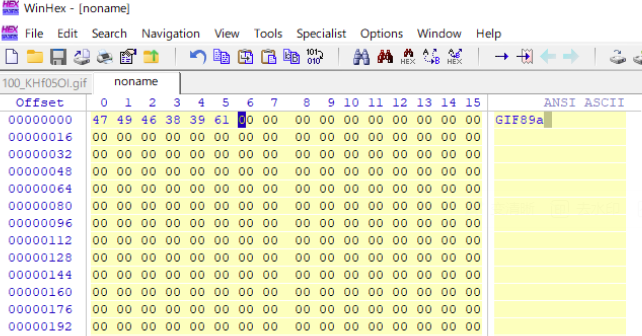 发现文件头数据不见了,我们ctrl+n新建一个文档,然后输入gif的头数据