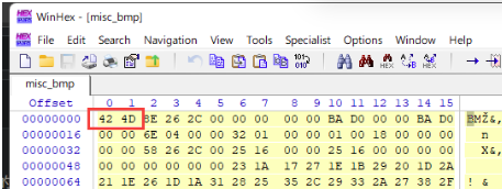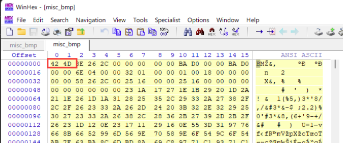 0-1:42 4D分别表示B和M,说明这是一个BMP格式的图像。
