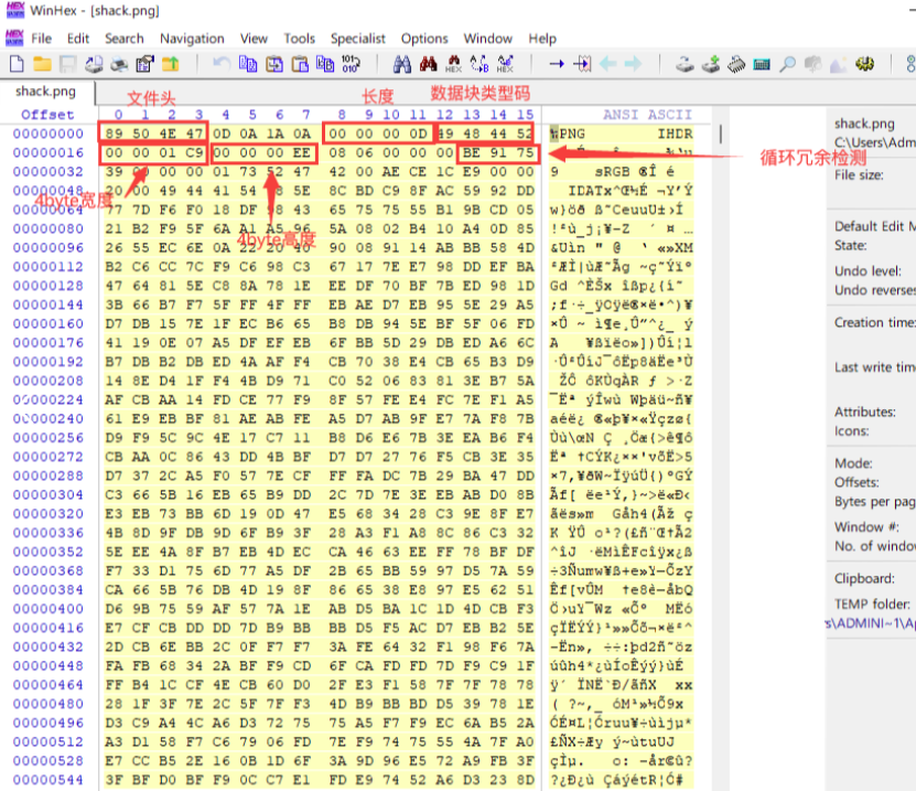 1.把图片拖进010editor中会发现左下角提示CRC不匹配,这是因为修改了高宽,却没有修改CRC,导致读取报错