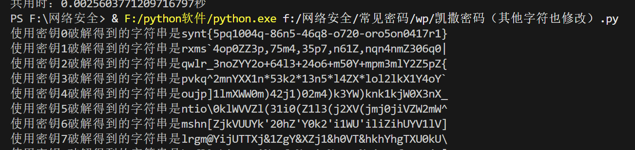 # 遍历所有可能的密钥,密钥的范围是从 0 到 letters 字符串的长度 - 1