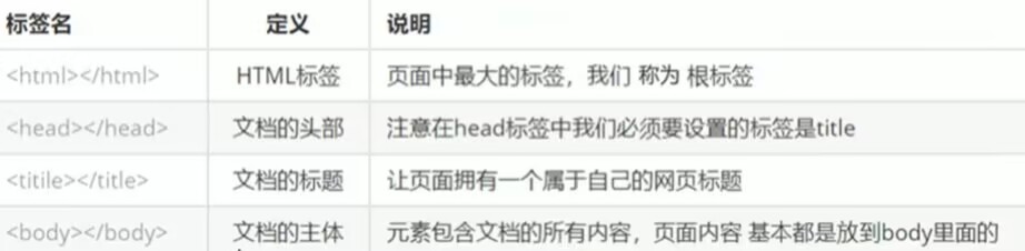 每个网页都会有一个基本的结构标签(也称为骨架标签),页面内容也是在这些基本标签上书写。