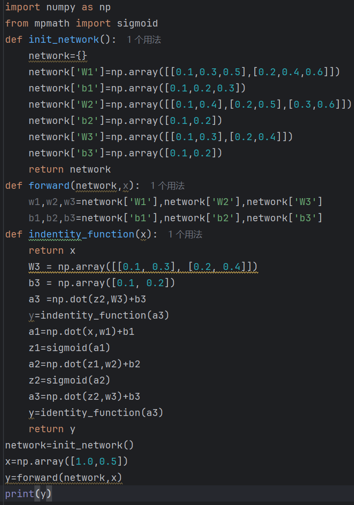此外,在三层神经网络中sigmoid函数的应用如下: