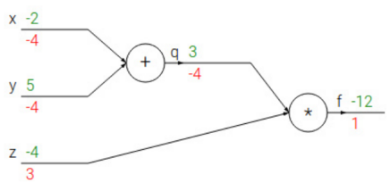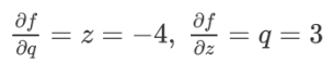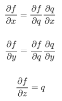 对于链式法则,先设函数f(x,y,z)=(x+y)z,令q=x+y,那么f=qz