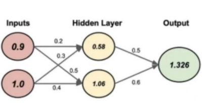 Z1_1=W_{1,1}*Input+b_1,1=0.9*0.2+1.0*0.3+0.1=0.58