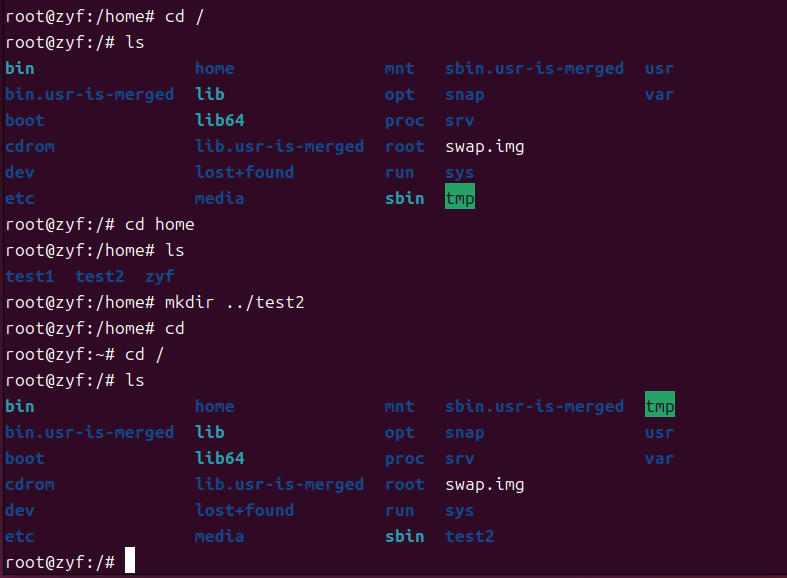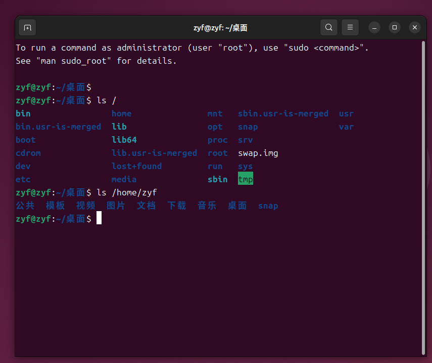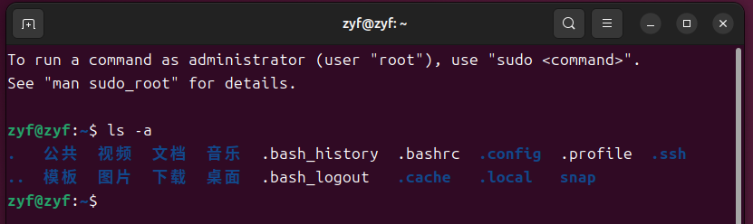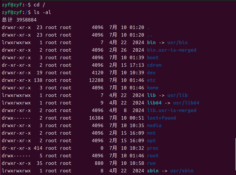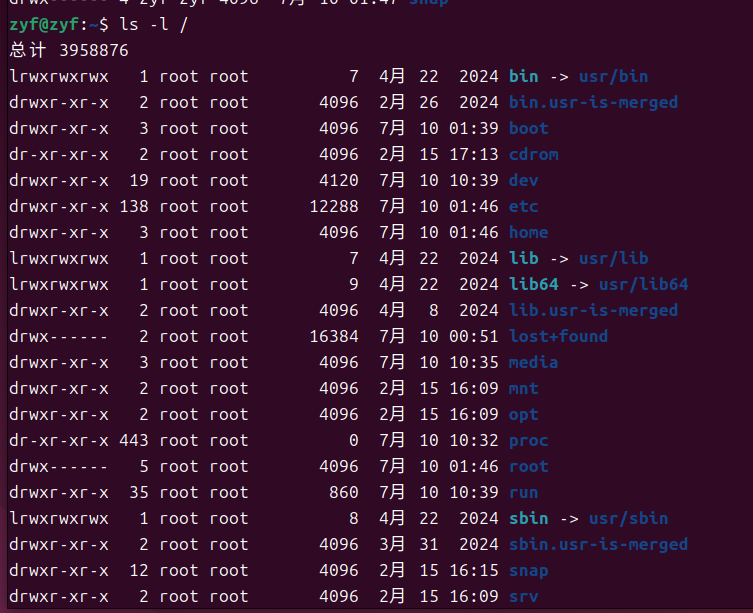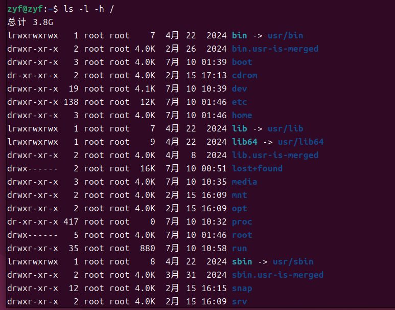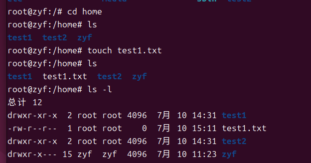 root@zyf:/home# ls -lh--当前路径下有哪些文件、文件夹