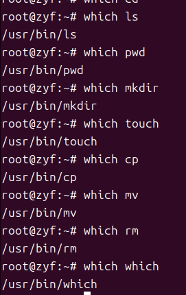 我们可以通过which命令,查看所使用的一系列命令的程序文件存放在哪里。