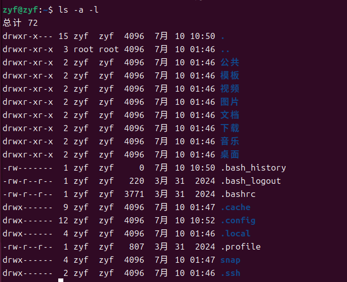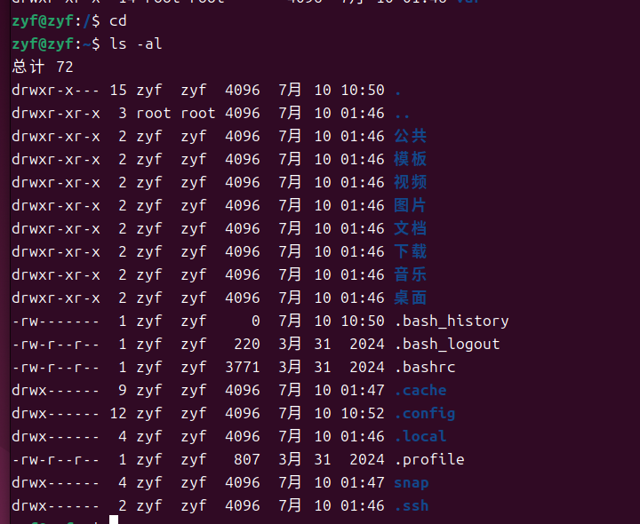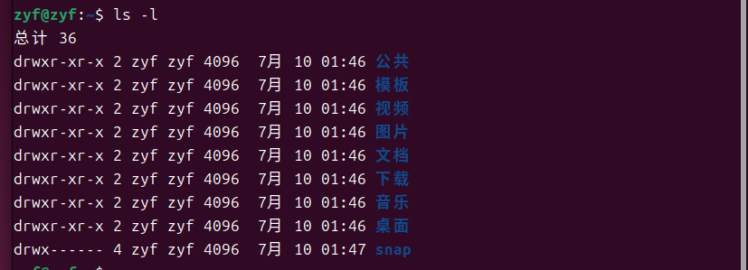 drwxr-x--- 15 zyf zyf 4.0K 7月 10 11:23 zyf