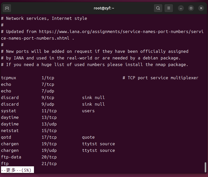Linux系统内置有一个文件,路径为:/etc/services,可以使用more命令查看