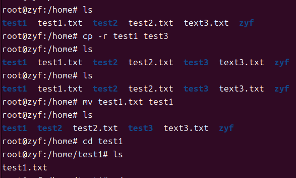 test1 test1.txt test2 test2.txt text3.txt zyf