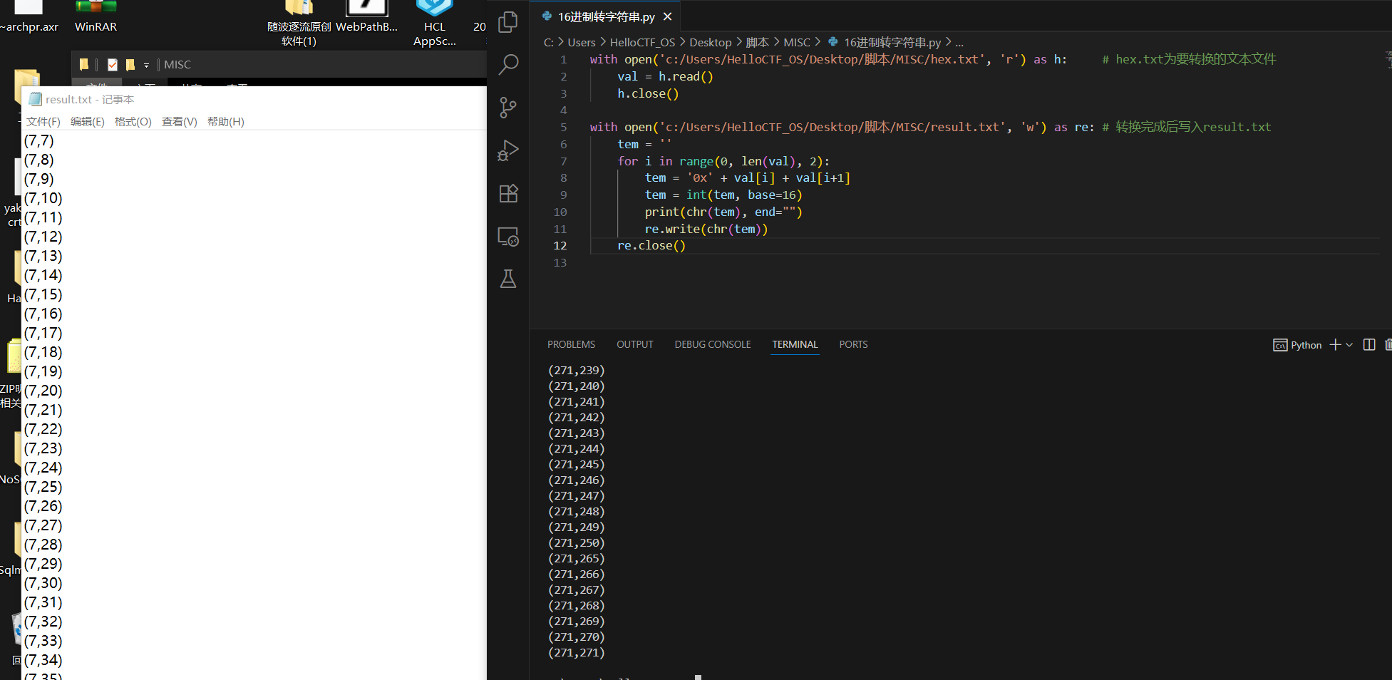 文件隐写16进制,分离出后用脚本转化字符串成坐标