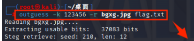 outguess -k 秘钥 -r 加密后的图片 输出文件名[自己命名] //提取文件