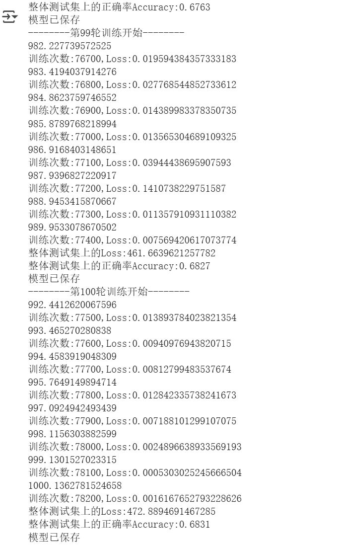 当训练至第100轮时,准确率和Loss均提升