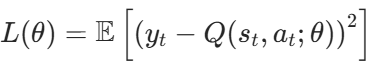 DQN 的训练通过最小化 “预测 Q 值” 与 “目标 Q 值” 的差异实现,损失函数为均方误差(MSE):